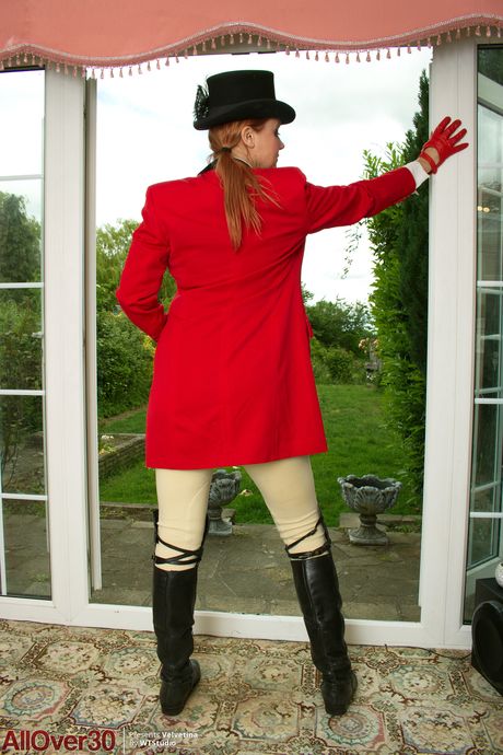 Mature British woman Velvetina Fox shows her big tits and mature holes