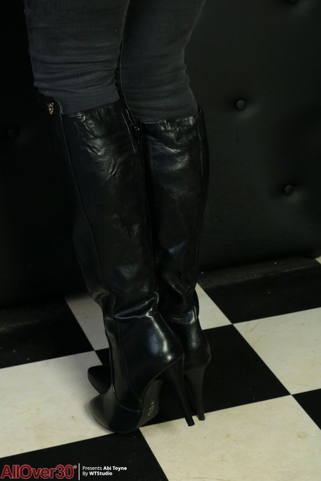 Mature brunette Abi Toyne shows her big ass and spreads her pussy