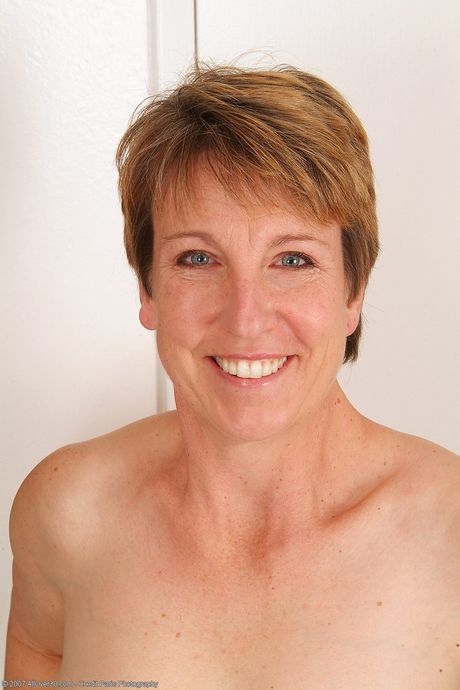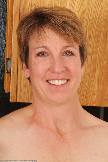 Mature housewife Embers strips and shows her hot body in the kitchen