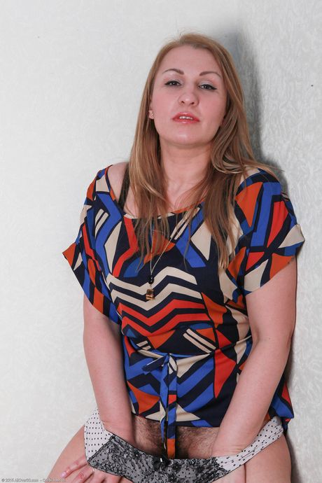 Mature lady Dana Karnevali shows her big tits and hairy pussy in heels
