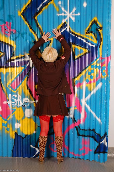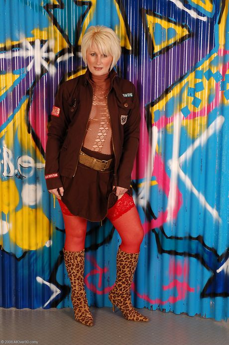 Mature lady Sally T shows her big ass and toys her pussy in stockings