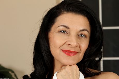 Mature lady Sarah Z strips off her lingerie and white stockings