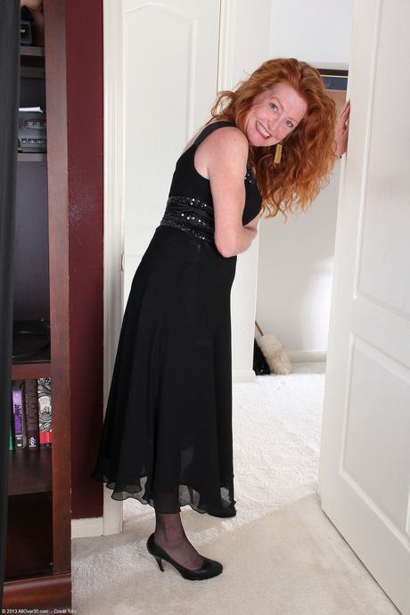 Mature lady Tami Estelle shows her shaved vagina in stockings