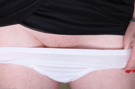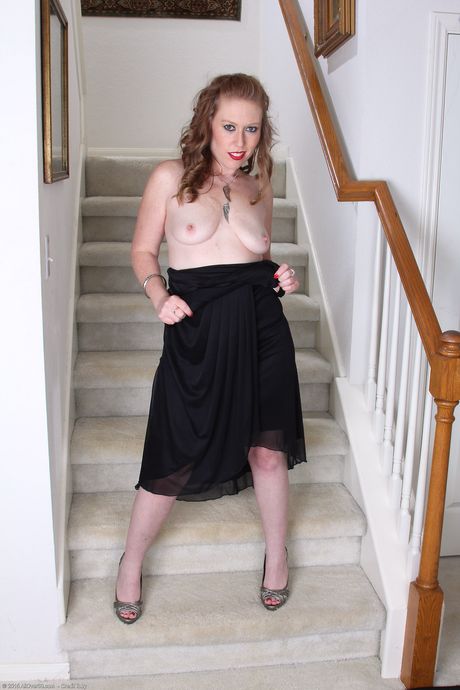 Mature redhead Amber Carlisle shows her big ass and spreads her twat