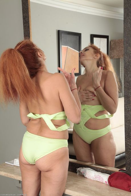 Mature redhead Angelina O shows off her big ass & her mature pussy