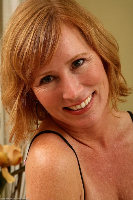 Mature redhead Cheyanne shows her big ass and fingers her pussy