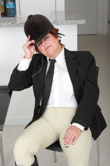 Mature redhead Eve T shows her saggy tits and hairy vagina in a solo