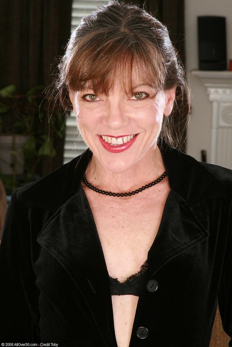 Mature redhead Lacy shows her big ass and hairy holes in stockings