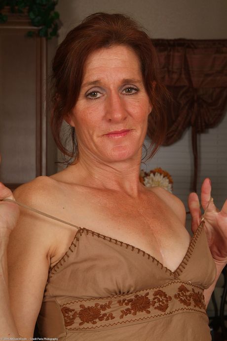 Mature redhead Monica E shows off her big ass in a sexy striptease