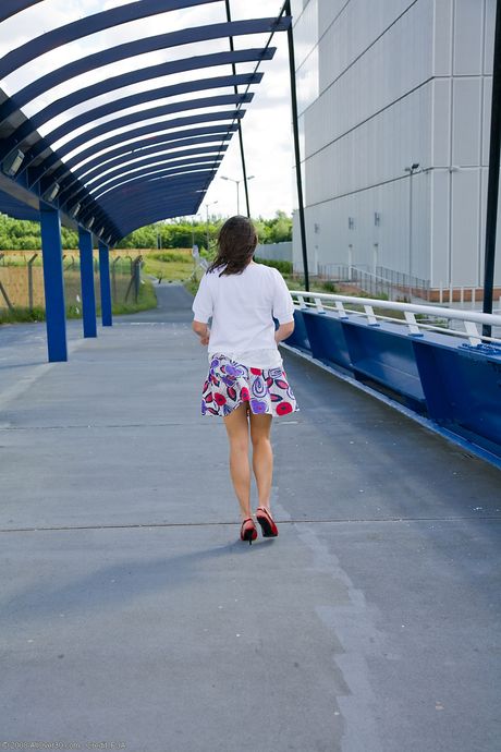 Mature secretary Carla shows off her big ass & her hot feet at work