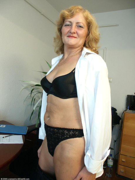 Mature secretary Eva shows her big ass and natural tits at work