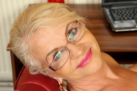 Mature secretary Inez shows her big ass and spreads her mature pussy