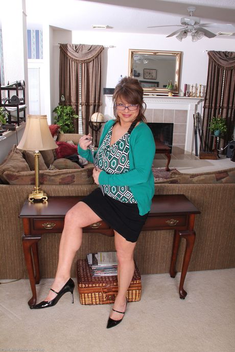 Mature secretary Penney Beavers shows her big ass and tits at the office