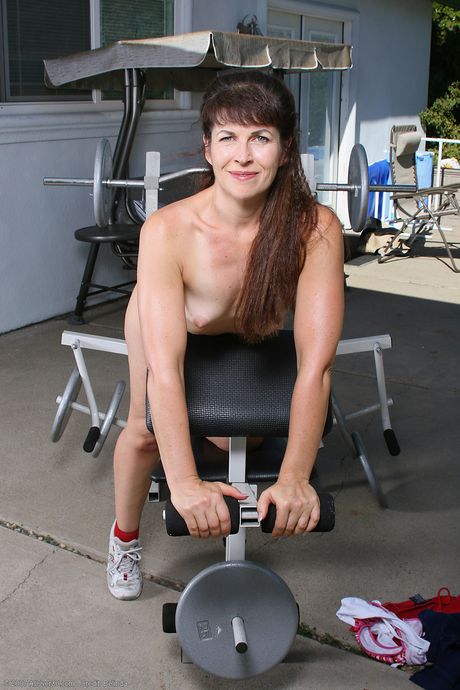Mature woman Andie shows her big ass and tits while wearing a uniform