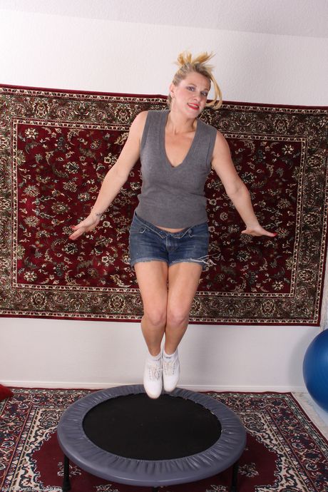 Mature woman Courtney Smith gets nude while wearing running shoes