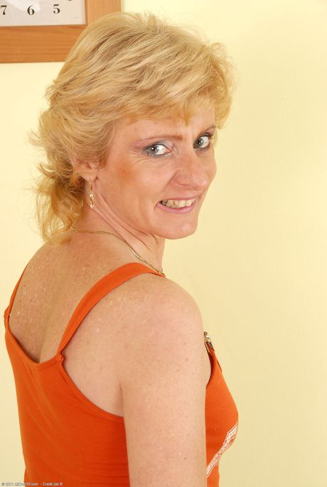 Mature woman Leny shows her hairy pussy after getting naked on a bed