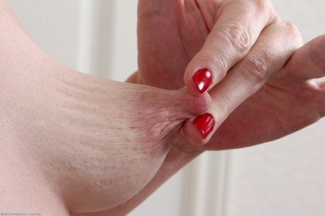 Mature woman Molly Golly shows her bush and spreads her pussy in stockings