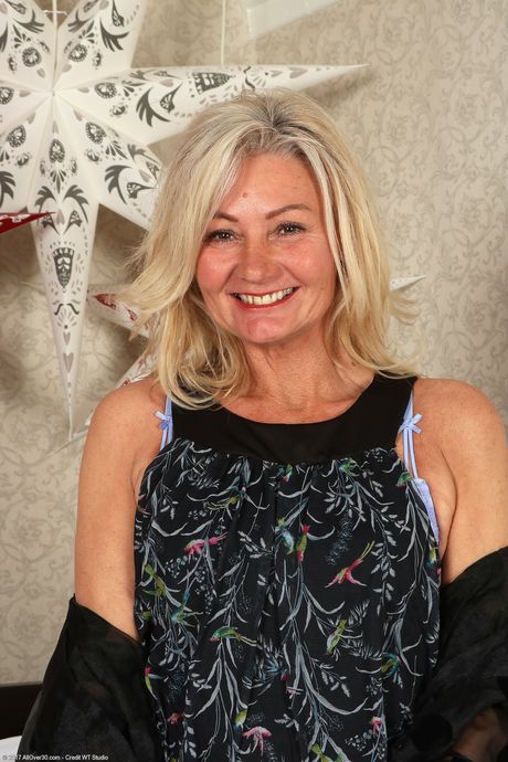 Over 30 woman Ellen B removes a black dress and lingerie to pose naked