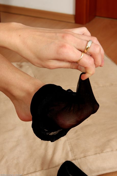 Over 30 woman Mija strips off her lingerie and stockings to pose naked