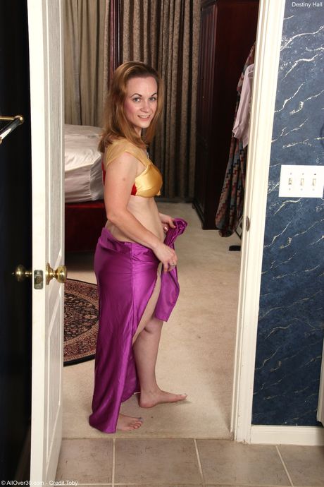 Redheaded chubby Destiny Hall strips and shows her big booty and tits