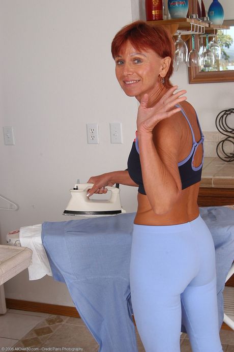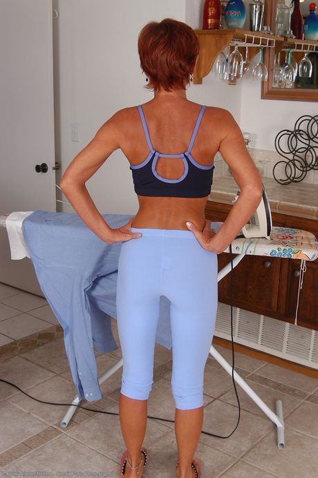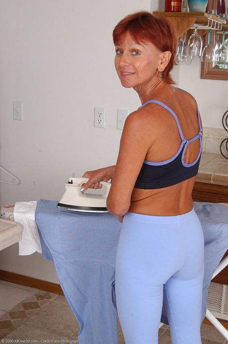 Redheaded housewife Kate shows her big tits and ass while doing housework