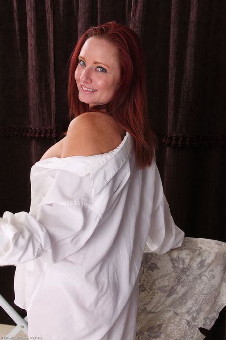 Redheaded housewife Shelly Jones shows her big tits and hot ass