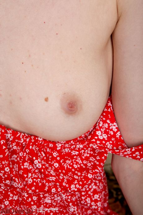 Redheaded MILF Dadi Meow removes a black dress to pose naked