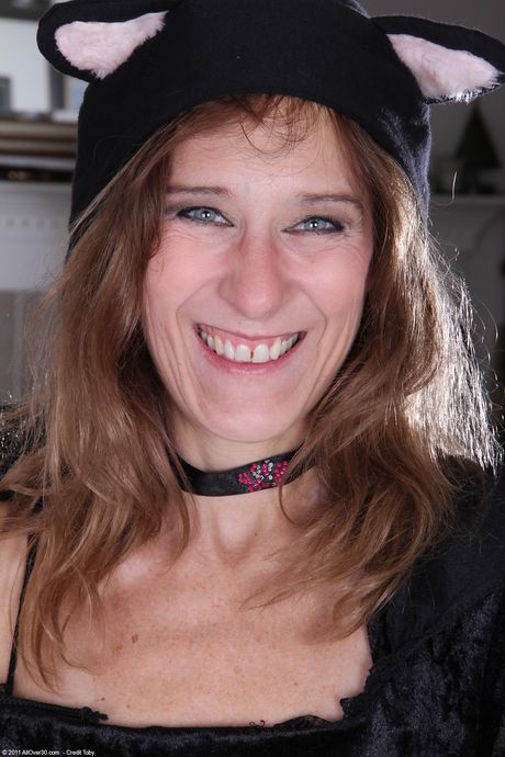 Redheaded MILF Jay Dee strips and rubs her mature pussy in a solo