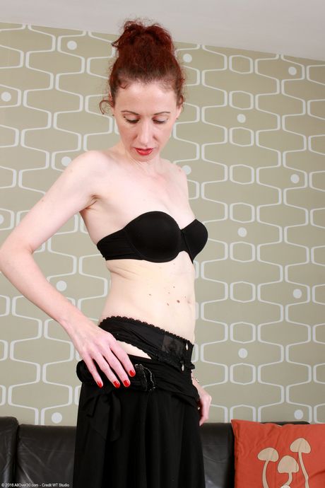 Sexy mature Scarlet Louise strips off her lingerie and poses in stockings