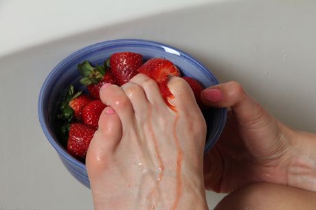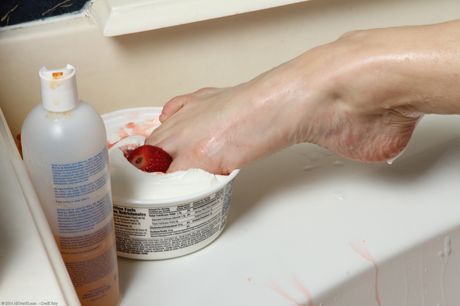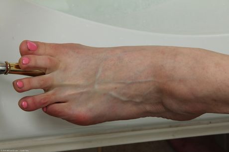 Sexy MILF Katrina Mathews washes her feet and toes in the bathroom