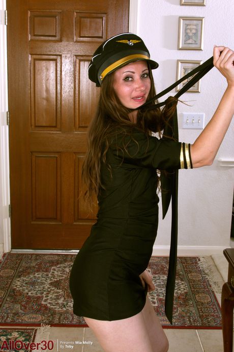 Sexy pilot Mia Molly strips and shows her hot pussy up close