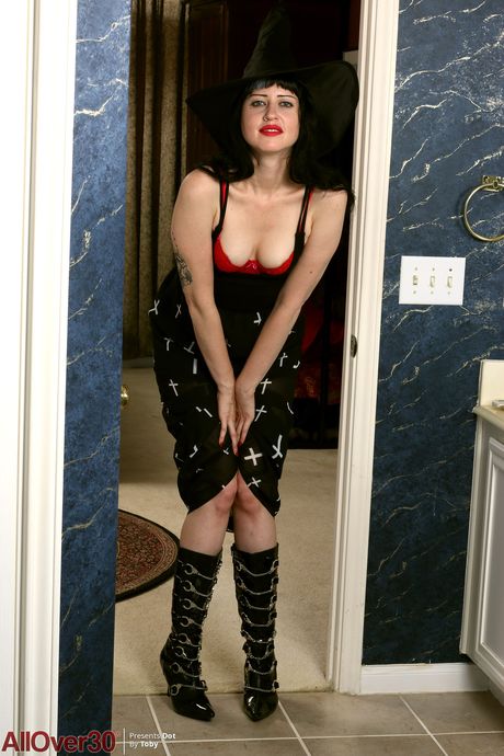 Sexy witch Dot shows off her tiny tits and her big ass in a solo