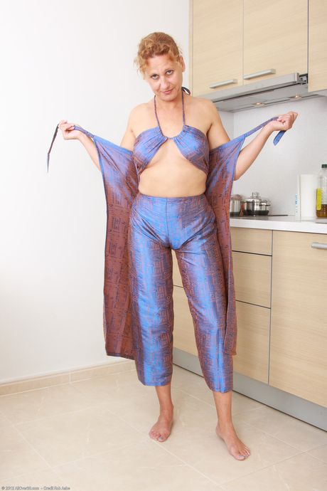 Short-haired MILF Inge shows her big ass and rubs her pussy