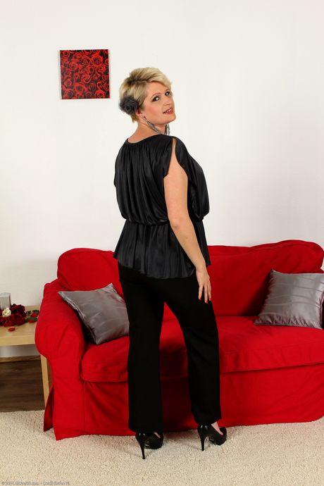 Short-haired MILF Mya P shows off her big ass & her tasty pussy