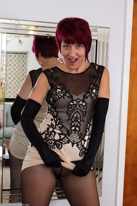 Skinny mature Penny Brooks shows her hot feet and toys her pussy