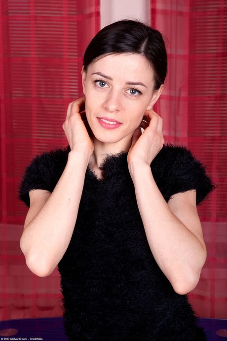 Skinny secretary Maria Ariana shows her tiny tits and hairy pussy