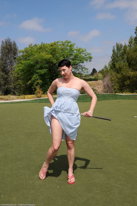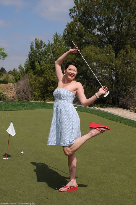 Sporty mature Kali Karinena strips and shows her big tits and holes