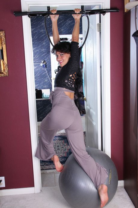 Sporty MILF Liza Rene shows off her hot ass and spreads her pussy