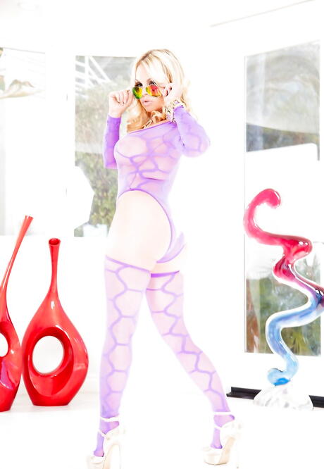 Alluring american blonde Jesse Jane revealing big tits and spreading her legs
