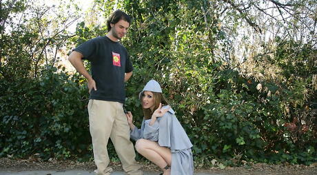 Alluring american bombshell Kayla Paige fucked hard by big dick outside