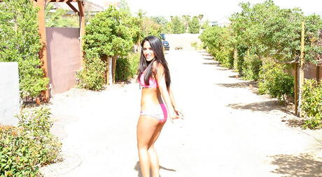 Alluring american porn star Jenaveve Jolie in fancy shorts in xxx hardcore action in bathroom