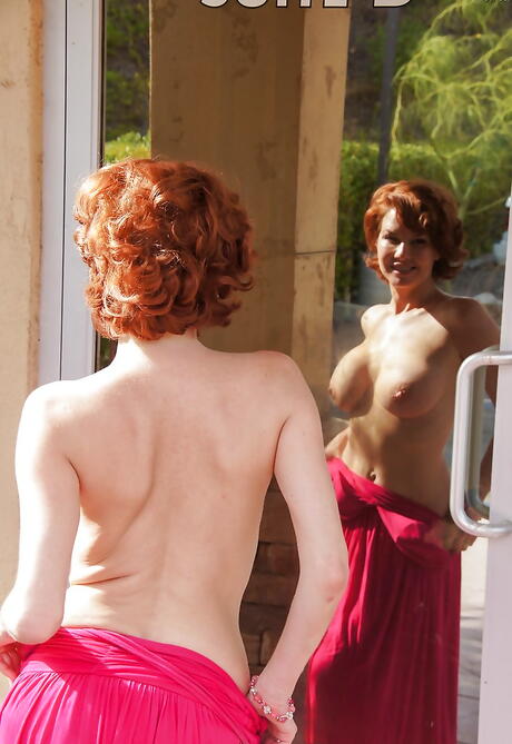 Alluring american redhead milf Veronica Avluv showing big titties and jerking off outdoor