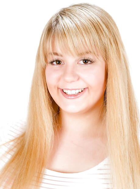 Alluring blonde hottie Layla Gray showing big hooters and spreading her legs