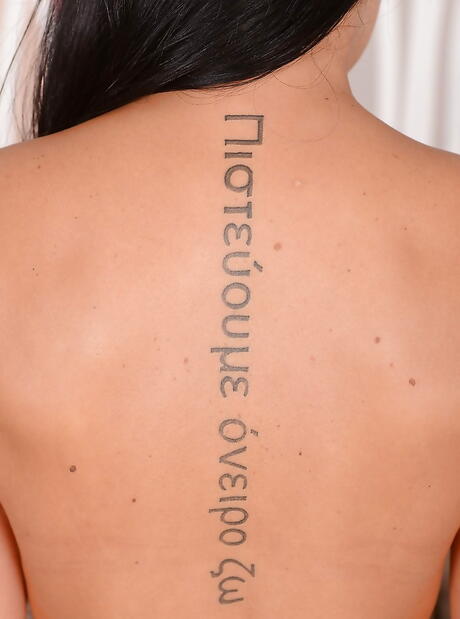 Alluring dark hair hottie Rosalina Love in sexy panties exhibiting big boobies and spreading her legs