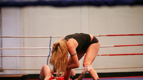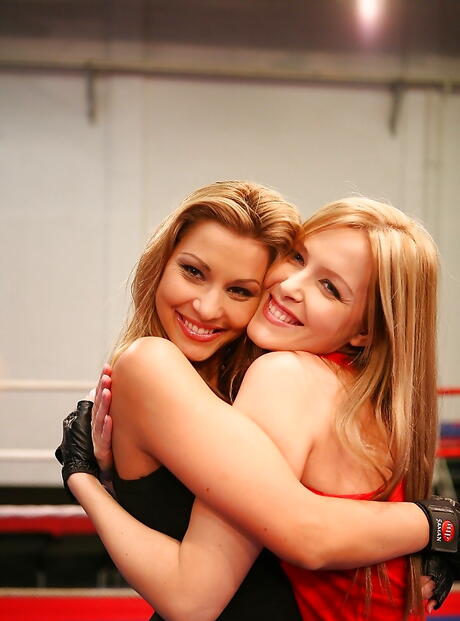 Alluring pornstars Sophie Moone and Cindy Hope in fancy shorts in rough catfight