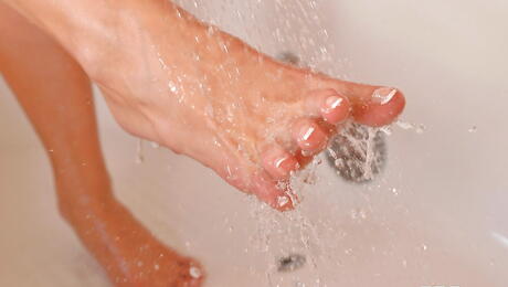 Alluring russian blonde Lucy Heart show some foot fetish in shower