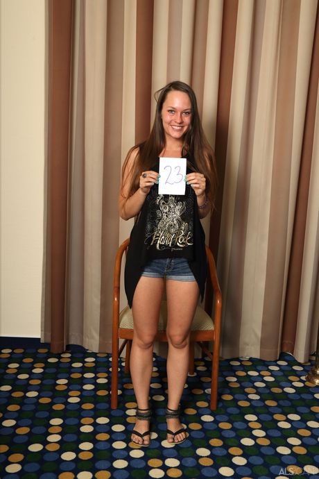 Amateur girl Vicky Love strips and teases with her tiny tits at the casting