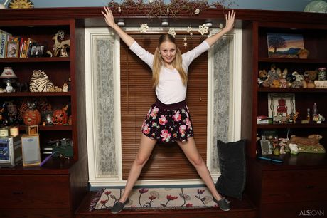 Blonde teen Lily Rader gets her pink pussy fucked by a big dick during a lesbian encounter
