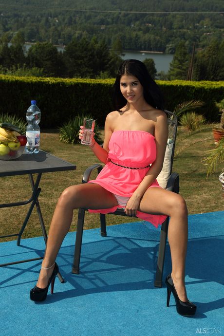Delicate teen Lady Dee strips and teases with her tiny tits and shaved pussy