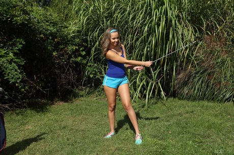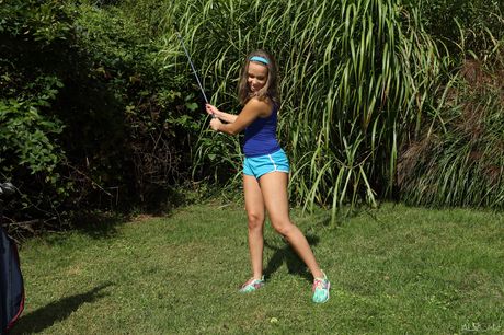 Flexible teen Liza Rowe pisses herself after masturbating with a putter